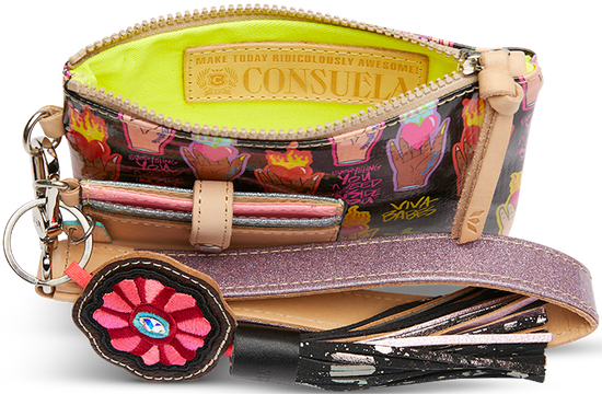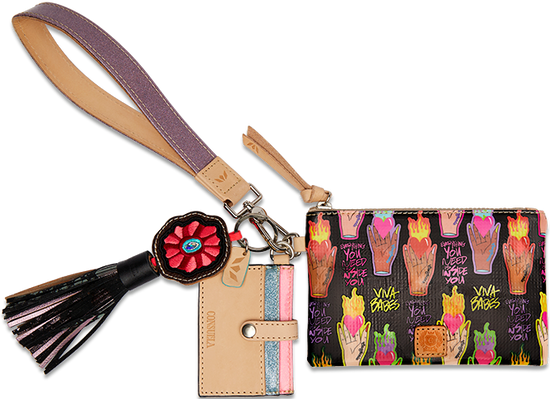 The Combi, a combination of on-the-go accessories, is a new way to carry your keys, cards, and the small stuff at all times. This colorful wristlet wallet includes a pocket pouch, secure card slot wallet and fits comfortably around your wrist- ready for your next journey.