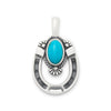 May good luck forever be on your side when you wear this Western Horseshoe Gemstone Pendant. The sterling silver horseshoe is decorated with a braided rope lasso and a radiant concho decoration. In the center is an oval gemstone typically used in American Southwest designs. Add to a chain necklace for a symbolic style to wear every day.