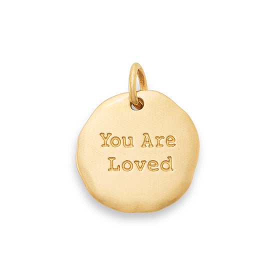 From James Avery Artisan Jewelry, simple and powerful, this sterling silver or 14K yellow gold charm is inscribed with "You Are Loved" on the front and a delicate cross on the back to gently remind you that you never walk alone when you have faith. Add this circle charm to any of our chains, charm necklaces, anklets or bracelets. Worn alone or with other meaningful charms, it reflects your personality, your beliefs and your style. It also makes a memorable gift for a loved one!